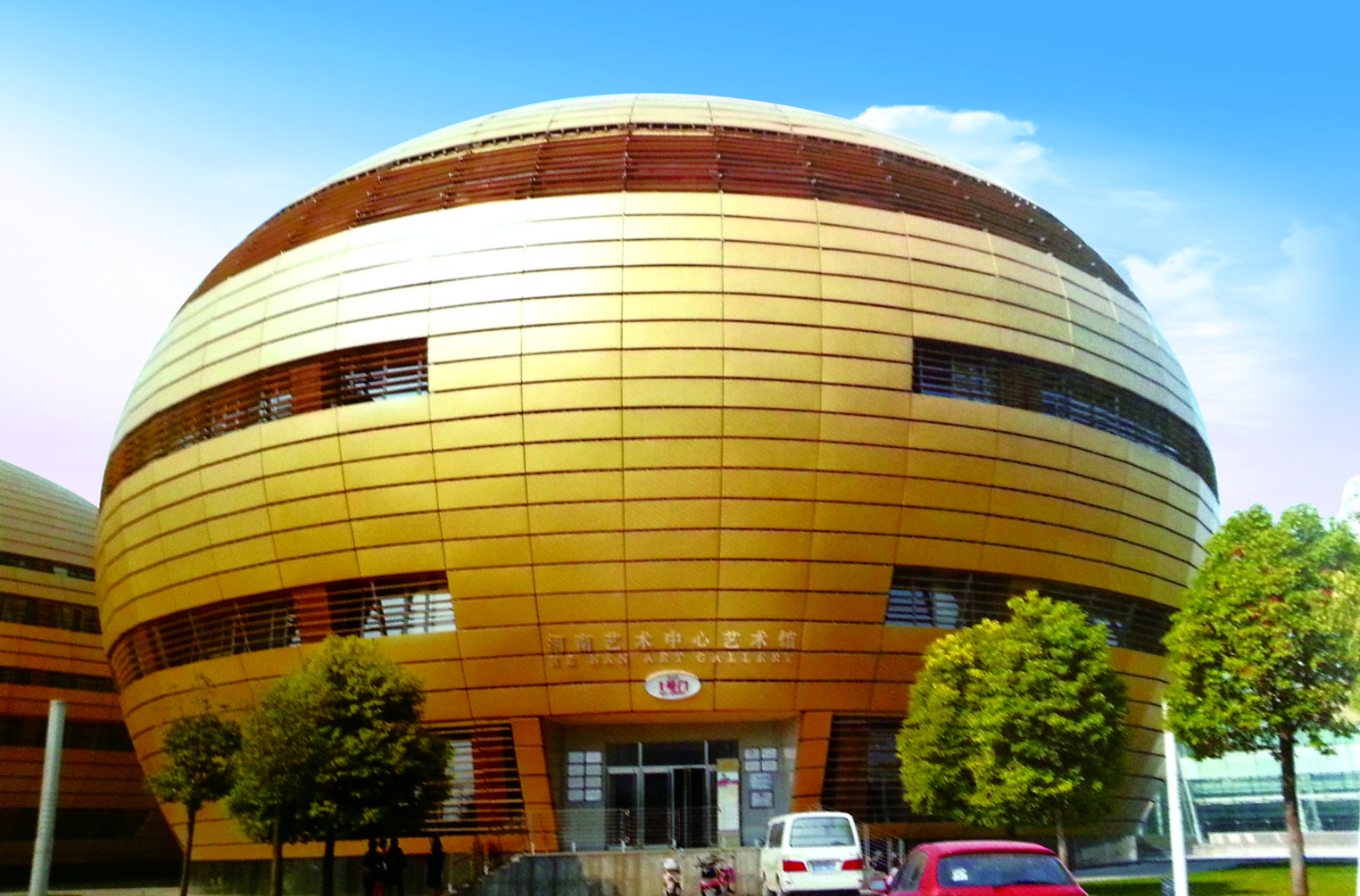 陸鋒人大膽探索,自主創新,利用蒙皮拉伸技術和三維建模原理,解決了鋁單板行業的難點技術——雙曲面鋁單板的生產、設計工藝,成為國內為數不多的真正能批量生產雙曲面鋁單板和復雜異型板的企業之一,為設計師提供了更為廣闊的想象和設計空間。